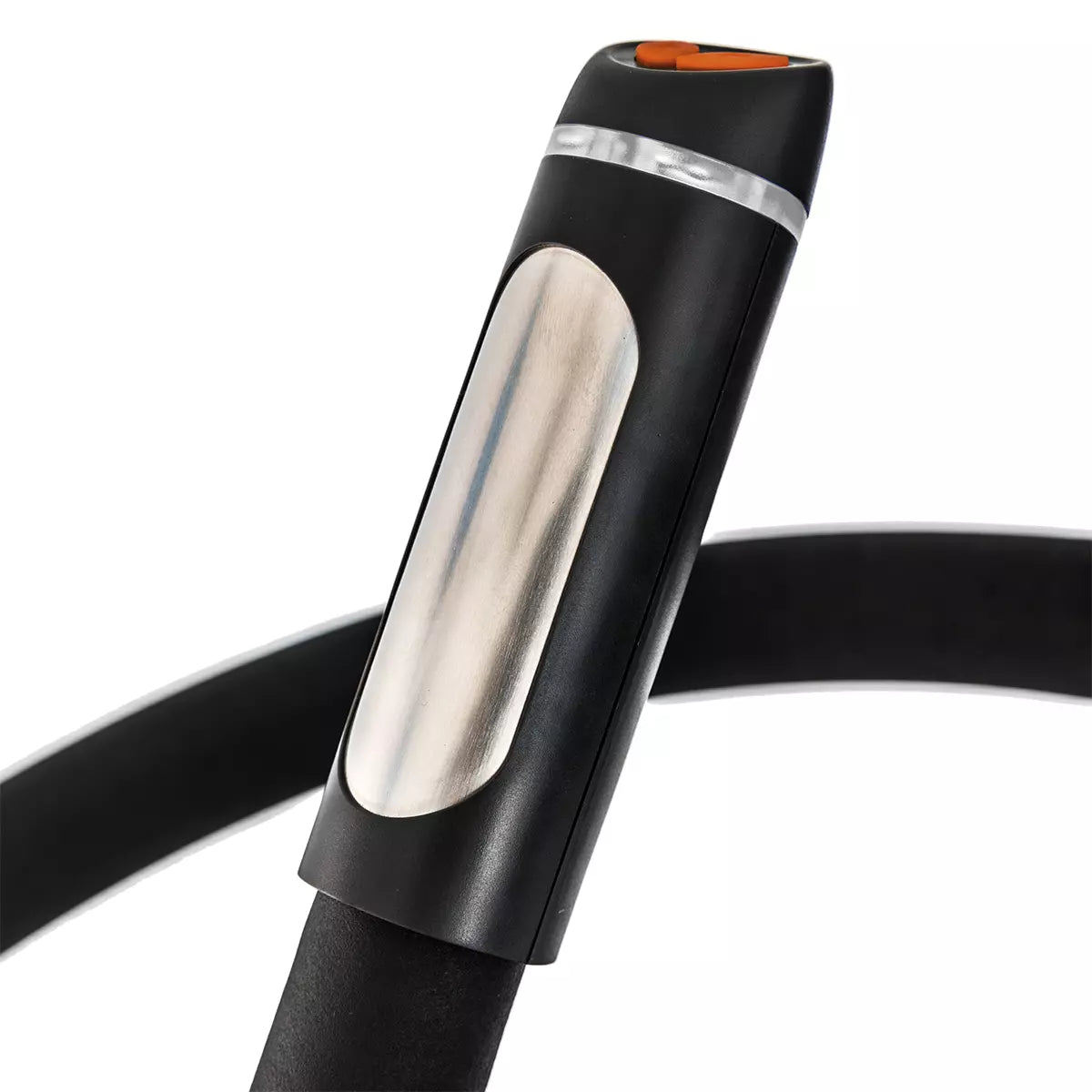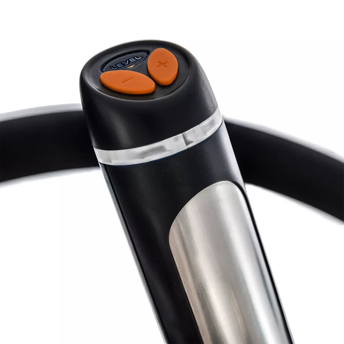 - Hand pulse sensors for heart rate monitoring.