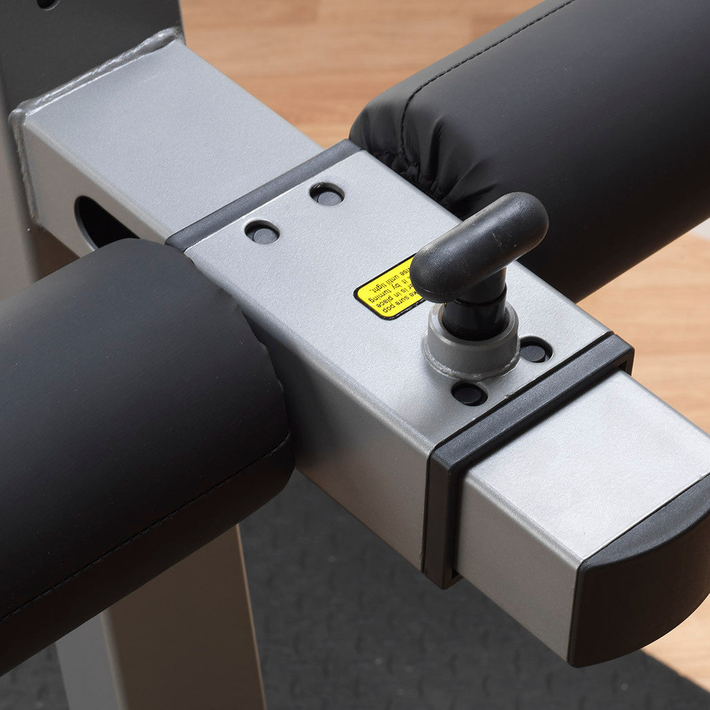 The Body-Solid Roman Chair specializes in developing the lower back, and also target the gluteal muscles, hamstrings and abdominals. The Roman Chair is made from heavy-gauge steel, with thick, double-stitched DuraFirm pads and oversize 8" foam rollers that adjust vertically and horizontally to fit all users.